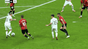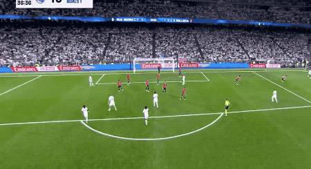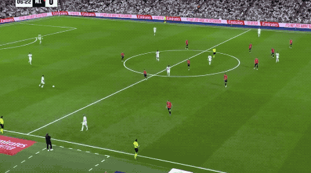 第18分钟,马洛卡利用角球完成破门,禁区中路皇马3人防守,都没能阻挡穆里奇头球破门。
