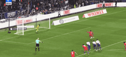 开场只有7分钟,巴黎获得前场任意球,图卢兹球员始终没有办法碰到皮球,若昂·内维斯原地倒钩,打破僵局。